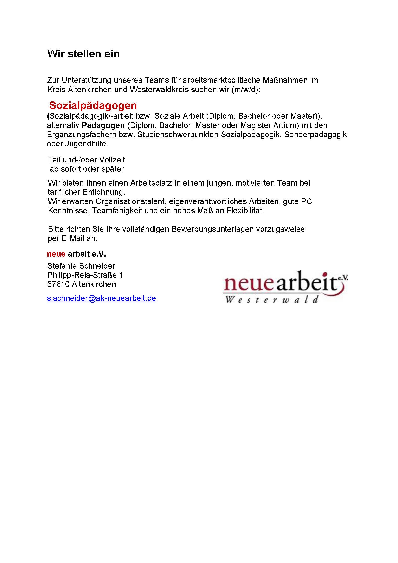 Willkommen bei "neue arbeit e.V. Westerwald"! Heute ist der: 10. Februar 2026