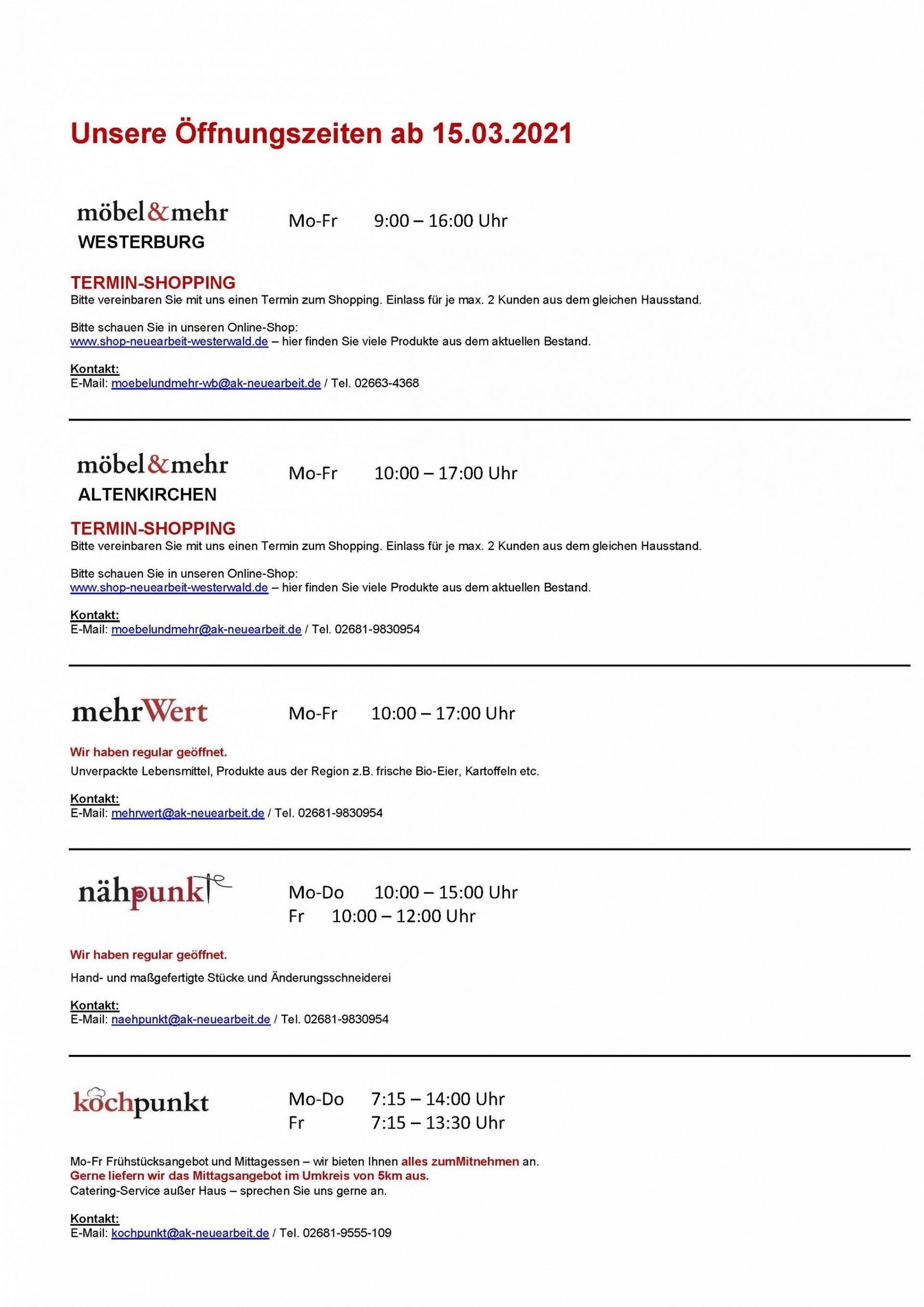 die steigenden Inzidenz-Werte sowohl im Kreis Altenkirchen, wie auch im Westerwaldkreis, erlauben aktuell nur das Termin-Shopping.